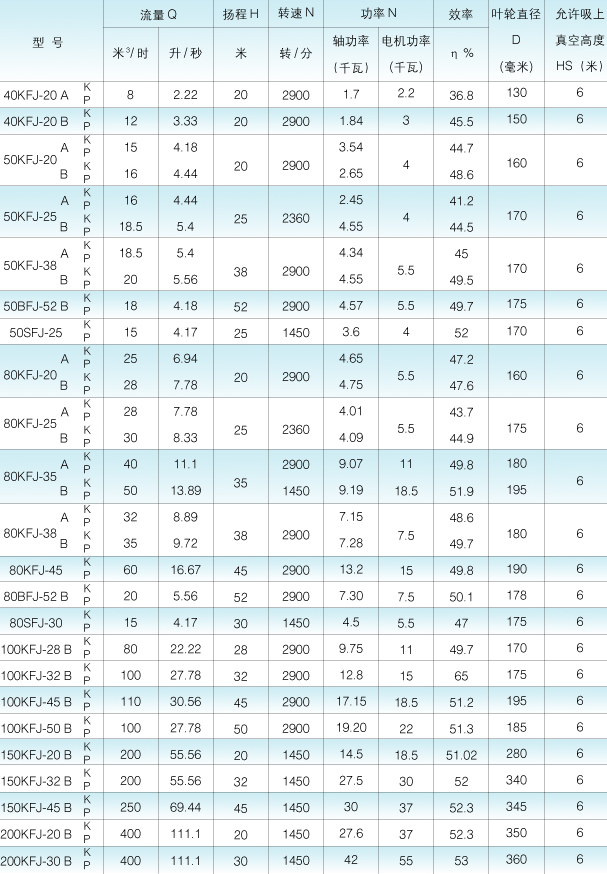 KFJ/BFJ/SFJ型系列耐磨耐腐耐温单级悬臂离心式衬胶泵,八十年代引进日本技术,进行多年国产化设计,其过流部分采用进口橡胶,经过炼胶.硫化等工艺模压一次成型,具有良好的耐磨、耐腐蚀、耐温性能。整体结构简单、体积小、重量轻、运转平稳、噪声低、维修方便、节能等优点。尤其我公司针对输送液体的情况。采用副叶轮动力密封以及采用新的机械密封装置、新型副叶轮K型油封装置和新的副叶轮K型水冷却密封四种密封形式,足以满足各种工况岗位要求。